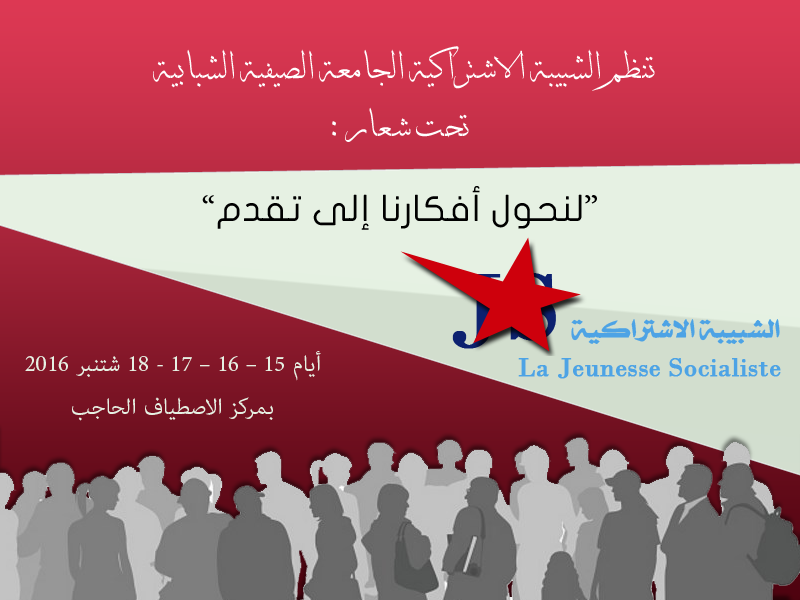 الجامعة الصيفية الشبابية للشبيبة الاشتراكية أيام 15 -16 -17 -18 شتنبر 2016 + البرنامج بلاغــات و إعلانــاتمستجدات Last updated الجمعة 16 سبتمبر 2016 شارك شارك
