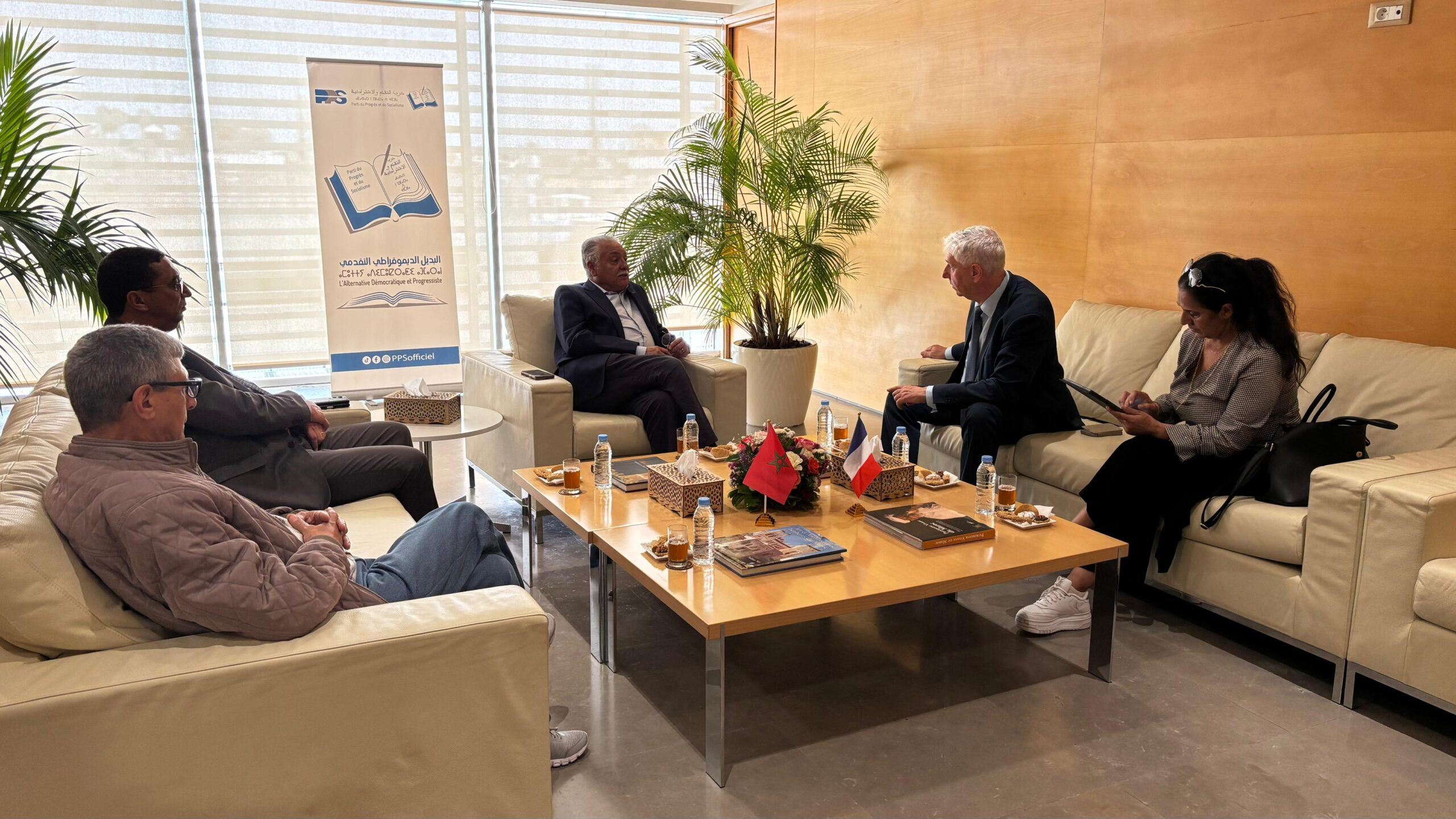 في إطار تعزيز علاقات الصداقة والتعاون بين حزب التقدم والاشتراكية والحزب الاشتراكي الفرنسي، استقبل الأمين العام للحزب، الرفيق محمد نبيل بنعبد الله، بمعية الرفيق جمال كريمي بنشقرون عضو المكتب السياسي للحزب، اليوم بالمقر الوطني للحزب بالرباط، وفداً عن الحزب الاشتراكي الفرنسي يترأسه النائب البرلماني الرفيق ستيفان هابلو، مرفوقاً بالسيدة مليكة العسراوي–ݣالي، رئيسة جمعية التضامن بالألزاس والمكلفة بمساندة طلبة العالم بفرنسا، والسيد محمد حلوم، عضو اللجنة المركزية للحزب ورئيس جمعية المتقاعدين المغاربة بمدينة نانسي.
