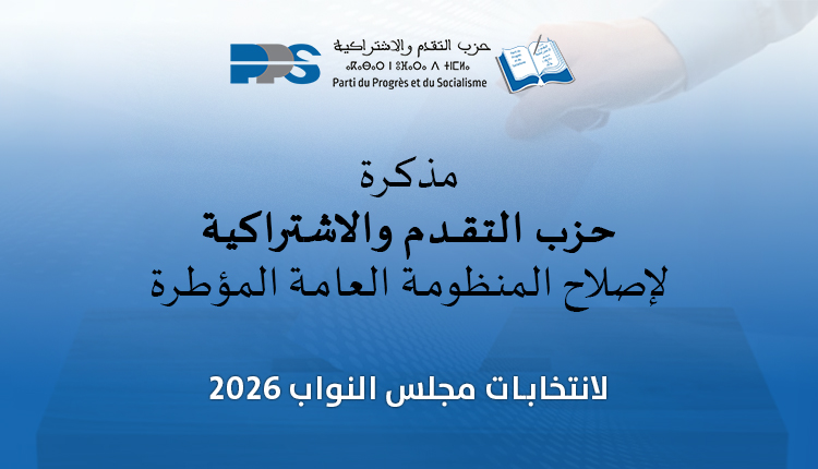 يَتَقَدَّمُ حزبُ التقدم والاشتراكية بمذكرته المتعلقة بالمنظومة العامة المؤطرة لانتخابات مجلس النواب، في سياق المشاوراتِ السياسية ذات الصلة، التي شكَّــــــلَت موضوعَ توجيهاتٍ ملكية سامية إلى السيد وزير الداخلية، في خطاب الذكرى السادسة والعشرين لعيد العرش المجيد.