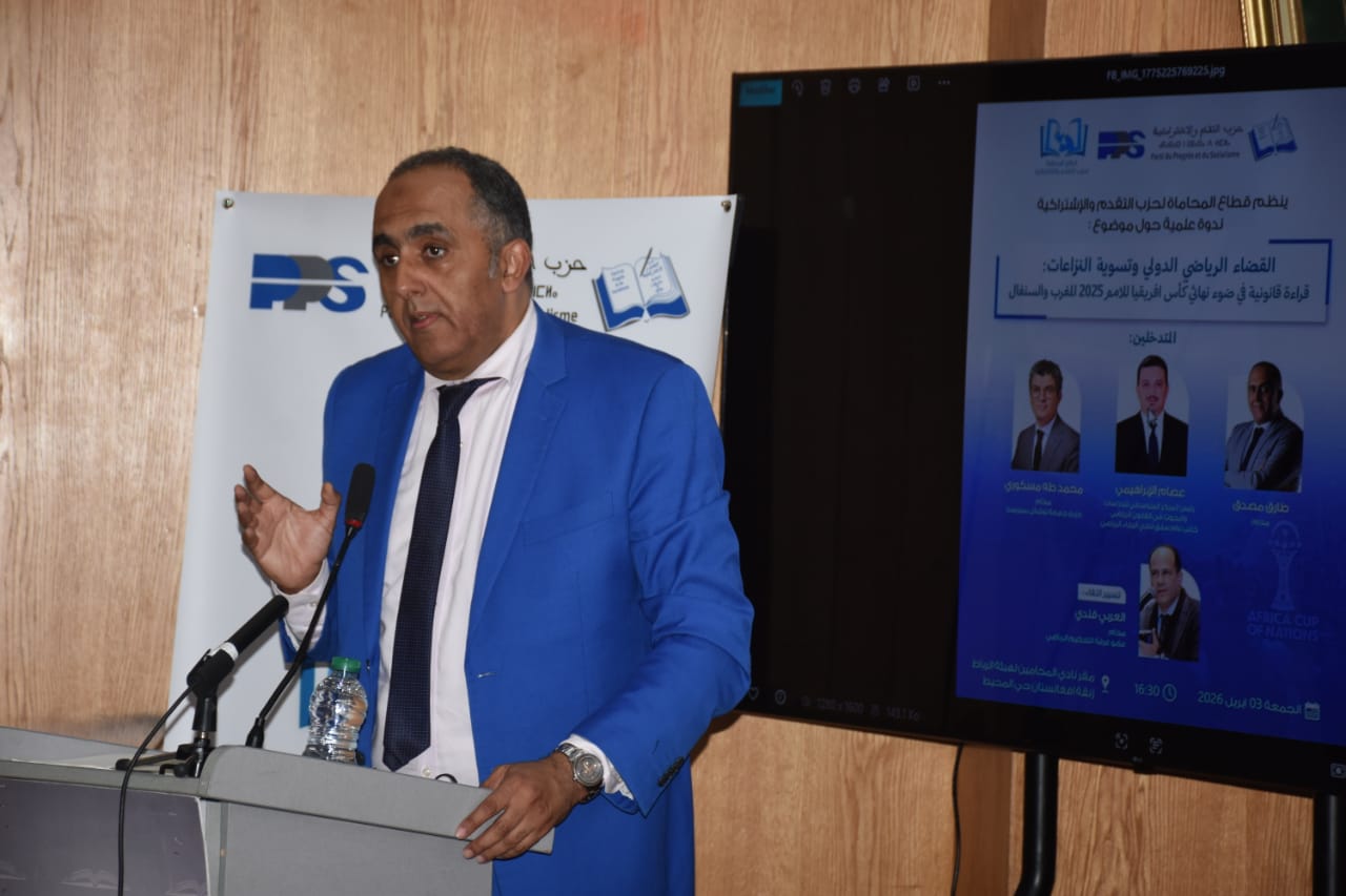 وإذ يثمن قطاع المحاماة لحزب التقدم والاشتراكية النجاح الذي عرفته هذه الندوة، التي تميزت بحضور متميز للباحثين والمهتمين بالقانون الرياضي ومن بينهم الاستاذ ابراهيم النايم رئيس غرفة التحكيم الرياضي بالمغرب و الذي تناول الكلمة مبرزا الدور الذي تقوم به غرفة التحكيم الرياضي بالمغرب في كل المنازعات الرياضية المعروضة عليها ، وآليات تنفيذ القرارات التحكيمية الصادرة عنها .